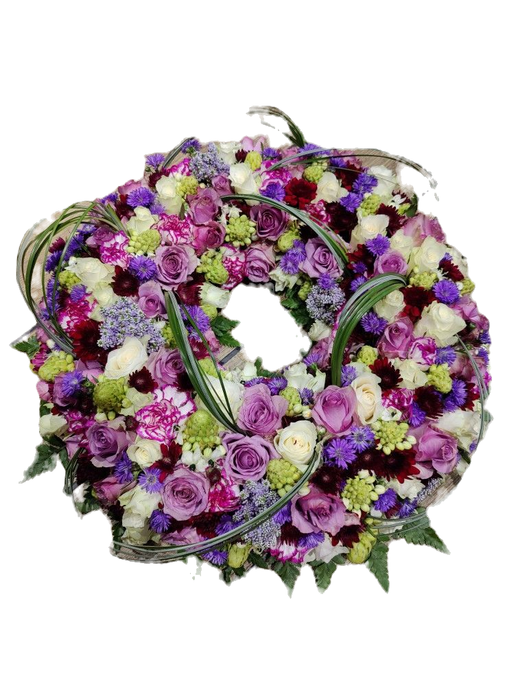Trauerkranz Violett mit Rosen